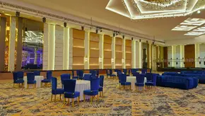 Calista Ballroom: Elegant 7,200 sq ft indoor space, divisible into three sections, accommodating up to 850 guests, plus a 3,000 sq ft pre-function foyer and a spacious courtyard.